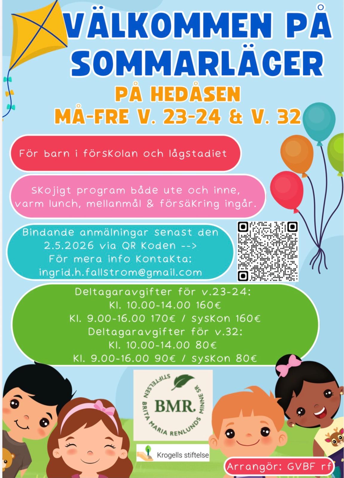 Här samlar vi info om sommarverksamhet för barn som ordnas i regionen. Hem och skola kan inte ordna somris detta år, eftersom skolbyggnaden inte är till vårt förfogande under sommaren på grund av de pågående byggarbetena. Hoppas den här sidan kan hjälpa er att hitta något som passar era barn :)